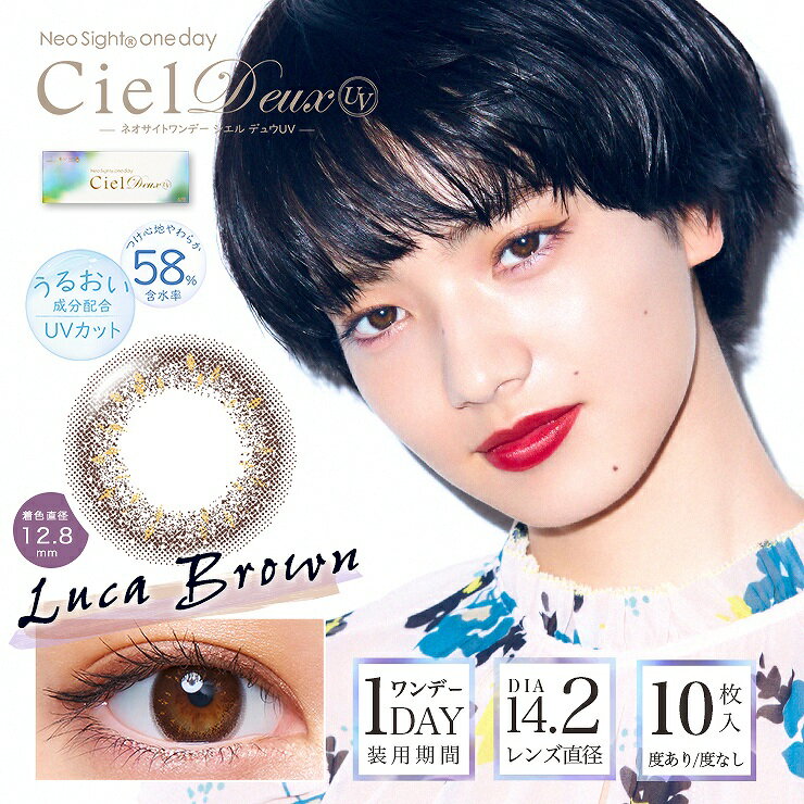 カラコン ネオサイト ワンデー シエル デュウ UV 【1箱10枚入】 度あり 度なし 14.2mm 小松菜奈 NeoSight 1day Ciel Deux ナチュラル 2トーン アイレ コンタクト uvカット 高含水